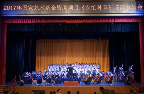 6月21日、22日,艺术学院欧阳时来副院长携艺术学院管弦乐团、合唱团100多名师生,奔赴共青市和九江市柴桑区展开国家艺术基金2017年度资助项目——合唱《农忙时节》的巡演。根据国家艺术基金管理中心在演出过程中边演边改的要求,课题组在课题申报成功之后就组织相关专家对作品提出修改意见,在首演之后继续进行充实修改,此次将《农忙时节》再次带到九江周边县市进行巡演,为该作品的推广和传播起到了重要作用。