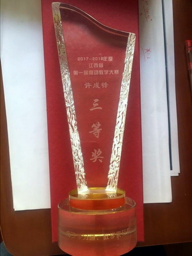 在数据评比赛段中,许成锋顺利晋级第二轮评比,最终以全省第17 名的成绩获得大赛的三等奖。
