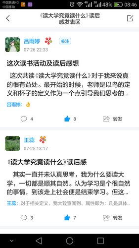 自7月9日活动正式展开以来,到8月31日活动结束。在近2个月的时间里,在殷庆林老师和郑连聪老师的带领下,大家共读了《读大学究竟读什么》、《红楼梦》2本书籍。导师们精心撰写导读帖、答疑解惑,读者参与热情很高,参与人数178人,累积发布508条话题,形成良好互动。