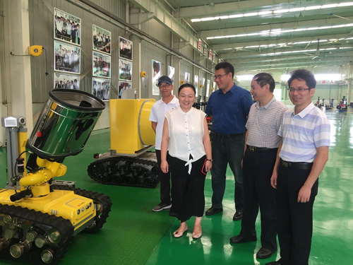 9月7日上午,机材学院院长张德勤、党委书记陈胜才、副院长李养良、省重点实验室高阳博士一行前往中信重工开诚(共青城)机器人产业基地考察。共青城市副市长张志坚,中信重工开诚(共青城)机器人产业基地负责人夏振伟热情接待了机材学院一行人员。