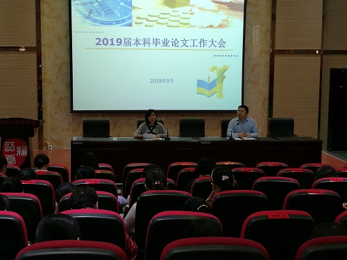 9月26日下午,外国语学院2019届本科毕业论文工作布置大会在外国语学院报告厅举行。参加会议的有外国语学院副院长罗其娟、周志高,教务科科长王伟以及全体本科论文指导老师和2019届全体本科毕业生。大会由罗副院长主持。