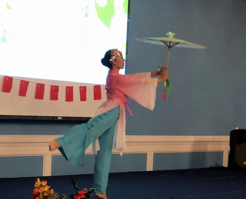 来自亚特兰大舞蹈团的艺术家在飘扬的国旗下为来宾奉上了一场精美绝伦的舞蹈盛宴,藏族舞、蒙古舞、纸伞舞、秧歌舞、彩虹舞……嘉宾们看得如痴如醉,他们踊跃登台与艺术家互动,现场学习功夫扇技法,把活动推向了高潮。庆典在优美的中国民歌声中圆满结束,宾客们不舍离去,争相在活动现场合影留念。