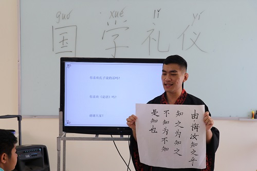 10月20日上午,暹粒吴哥高中孔子课堂开展了《论语》经典诵读活动。蔡尚益老师向学生讲述了有关孔子的背景知识,并配以2018年北京奥运会开幕式中《论语》的精彩瞬间,学生们表现出很大的兴趣。接着,蔡尚益老师对《论语》进行了介绍,并讲解了《论语》中“温故而知新,可以为师矣”等名句的意思。活动最后,学生们模仿孔子杏坛讲学的场景,跟随蔡尚益老师一起诵读论语选段。通过此次活动,学生们对孔子及《论语》有了进一步的认识和了解。
