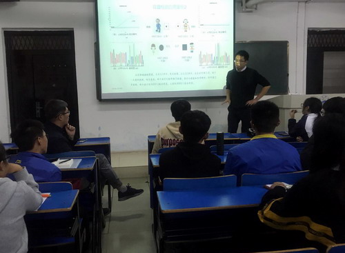 10月21日晚,基础医学院付登刚博士在浔东校区华文楼102教室作了题为《SNPs检测技术及其在遗传疾病筛查中的应用》的学术讲座,药理学教研室主任熊建军博士、社会医学与公共卫生学教研室副主任黄邵鑫博士及 2018级预防医学本科专业全体学生参加了本次讲座。