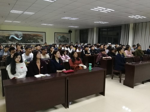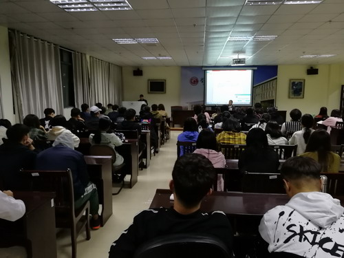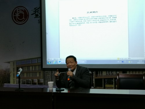 此次讲座分为两部分进行。首先,全体人员一起观看央视新闻“朝闻天下”播出的视频访谈节目——《第七届北京国际美术双年展开幕》,着重观看视频影像中阳小毛教授的采访片段。由中国美术家协会举办,主题为“丝路与世界闻名”的第七届北京国际美术双年展,阳小毛教授应中国美术家协会要求,完成了展览中最重要,位于展厅中心位置的巨幅油画作品《一带一路新篇章》,该作品受到中国美术家协会主席刘大为和艺术界各方的肯定,阳小毛教授分享了此幅作品的创作经历和心得体会,告诉同学们是如何一步步将一带一路巨幅作品完整创作。他从创作初始开始讲起,再到研究草图,与各方艺术家交流探讨,从而使大家对大型艺术创作有一个基本的了解,使学生认识到了课堂教学知识以外的应用,加深了对艺术的理解。