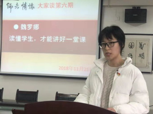 所幸我在上课时在黑板上写下了联系方式,很多同学加了我的微信。我问一个学生对我上课有什么意见,他回的是:“老师,我觉得你讲得挺好的,但是这个课真的没什么意思,都是概念,感觉学不到东西。” 我知道,这样的教学反馈,说明老师的教与学生的学之间出现了错位,没对上点。我很焦急,又不敢马上就去求教师兄师姐们,只好抓紧时间去旁听他们的课,——刚好,新入职老师本身也有听课学习的任务。我发现,我们学院很多讲课很好的老师风格各有不同,但有一个共同点,那就是:都在以不同的方式关注学生、调动学生、启发学生、督导学生。比如:有的老师讲课特别注意仪表,谈吐很潇洒,很有气场,对学生有很强得吸引力;有的老师课堂用语特别新潮,与学生很有共同语言,课堂气氛非常热烈;有的老师经常深入到教室中间甚至后排讲解,后排的学生听课也认真起来;还有的老师特别喜欢把枯燥的理论、技术问题设置为学生将来在职业岗位上可能要面临的问题,学生的听课兴趣一下子就上来了。等等,等等,让我反思起自己的课:我的备课不能说不认真,我对着镜子演绎得滚瓜烂熟的确实是一个让我自己十分满意的过程。但是,这个满意,没有学生参与,与学生无关!对比师兄师姐们,我知道了问题之所在:他们的授课之所以能吸引学生,是因为他们始终围绕着学生,针对着学生,他们读懂了学生;而我的课,只是在讲给镜子里的魏老师听,没有关注学生,没有把学生当作课堂的中心,更没有读懂学生。