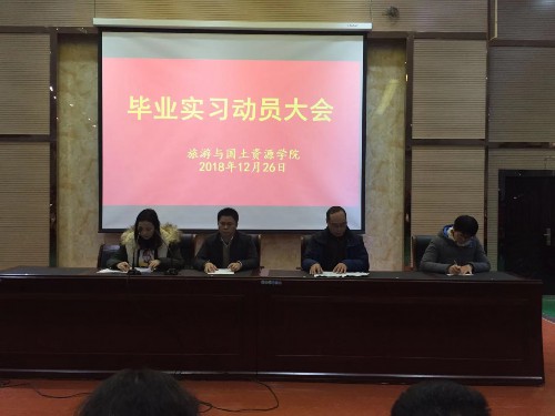 为统一思想,落实好学校就业工作会议精神,进一步推动2019届毕业生实习就业工作,旅游与国土资源学院于12月26日上午在香远楼三楼报告厅召开2019届毕业生实习动员大会,院长李松志出席会议,副院长赵追主持会议,教务科、学生科、全体班主任及实习带队老师、2019届全体毕业实习学生参加了会议。