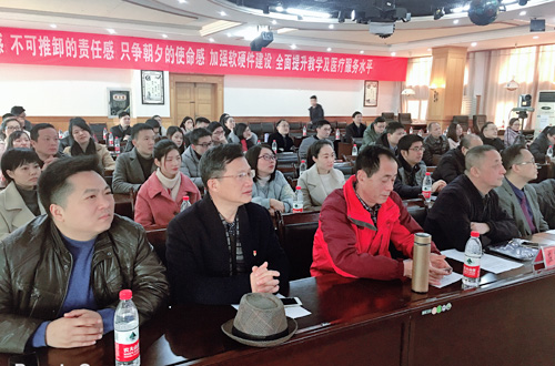 近日,由临床医学院/附属医院消化内科承办的第一届食管胃静脉曲张内镜治疗学术会议——九江地区ESVD研讨会,在该院行政楼九楼多功能会议厅成功举办。该院纪委书记刘英明出席会议,九江市及周边地区相关专业同仁近百人参加了大会。会议由医院消化内科主任蔡长春主持。会议采用了操作实时直播和转播技术,在线聆听和观看直播人数达到了数千人。