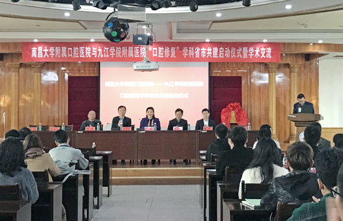 南昌大学附属口腔医院与临床医学院/附属医院正式启动口腔修复学科省市共建项目,3月26日,启动仪式暨学术交流会在庐峰校区顺利举行。南昌大学附属口腔医院党委书记廖岚,项目对口负责专家石连水、胡楠,临床医学院/附属医院副院长黄啸林等出席活动。会议由附属口腔医院主任汪文丰主持,来自全市的100余名口腔同仁参加了学术交流活动。