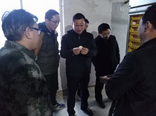 在芙蓉村腾龙养鸡专业合作社,负责人胡小红介绍了合作社+基地+股东+股民+农户模式,以及养鸡自动化喂料、收蛋技术和销售情况。