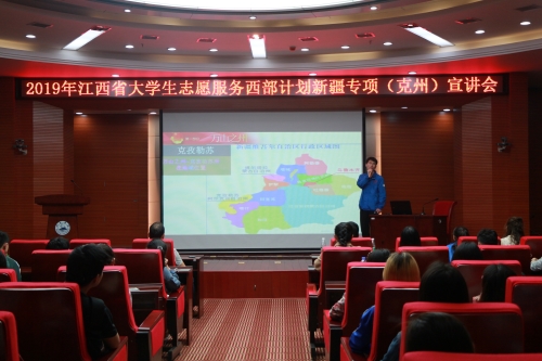 “到西部去,到基层去,到祖国和人民最需要的地方去”。4月17日下午,2019年江西省大学生志愿者服务西部计划新疆专项(克州)宣讲会在永利yl23411集团官网逸夫图书馆报告厅举行。新疆克州乌恰县团委书记阿不都瓦力·阿山拜克和4位西部计划服务新疆优秀志愿者与师生分享了他们服务新疆、奉献基层的心得感悟,校团委负责人以及200余名毕业生、青年志愿者代表参加了宣讲会。活动由校团委副书记任丹阳主持。