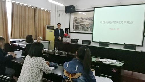 活动中,李松志博士首先作了“中国传统村落研究聚焦点”的主题发言,主要围绕国外研究中国传统村落范式、国内研究传统村落的进展、我院研究传统村落聚焦点三个方面作了阐述。李博士的发言选取内容新颖,讲解透彻,把握研究前沿,理论与实践相结合,体现了深厚的专业素养。随后老师们就中国传统古村落的保护与开发;从地质地貌上入手研究;对已消逝的古村落的VR技术恢复;古村落的评级及评价的指标体系建立等方面和李博士进行了自由讨论和深入交流。