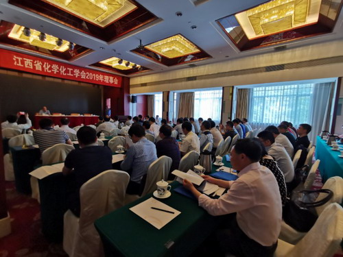5月12日,江西省化学化工学会2019年理事会在南昌赣江宾馆召开。学会正副理事长、常务理事、正副秘书长、理事及各专业委员会正副主任、正副秘书长及委员共120余人参会。化环学院副院长曹小华教授、江西省生态化工工程技术研究中心副主任彭游教授、有机硅研发中心副主任占昌朝教授、王建国教授和黄华南博士应邀参会。