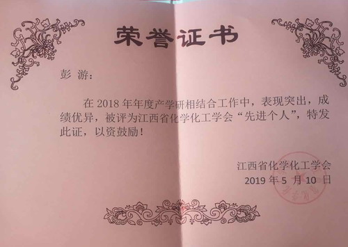 会议还审议通过了新增选理事、常务理事和副理事长,并表彰了先进集体和先进个人。永利yl23411集团官网彭游教授、占昌朝教授同时被评为化学化工学会先进个人(全省仅表彰7人)。迄今为止,永利yl23411集团官网已经连续三年共5人(王建国、谭景林、曹小华、彭游、占昌朝)荣获省化工学会产学研先进个人,获奖人数为全省第一。学会还特别表扬了永利yl23411集团官网化环学院在产学研合作服务地方经济建设方面取得的显著成绩,特别是2018年与中国化工学会共建“中国化工学会九江服务站”、化学工程与工艺专业入选江西省一流特色专业(纳入省财政专项资助)。