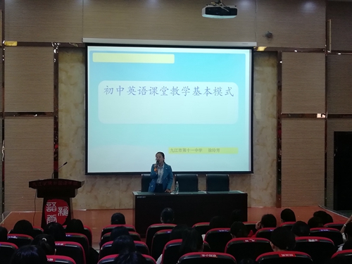 为期一周的教育见习系列活动中,学院领导特邀九江市十一中优秀教师徐玲芳为同学们进行了以“初中英语课堂基本教学模式”为主题的专题讲座。讲座中,徐玲芳老师侃侃而谈,结合实际教学案例,从初中英语教材内容单元特色、学时安排、英语课型和教学流程等方面为大家详细讲解了初中英语教学基本模式。精彩生动的讲座受到了参会师生的热烈欢迎,大家听得津津有味,沉醉其中。在交流互动环节,活动气氛更是活跃异常,同学们踊跃参与,积极提问,分别就英语课堂教学法、英语课堂师生互动有效性和英语语法课堂导入法等方面问题与徐老师进行了交流,徐老师也耐心倾听并一一为大家答疑解惑,传授相关教学经验。