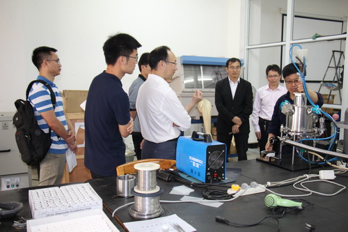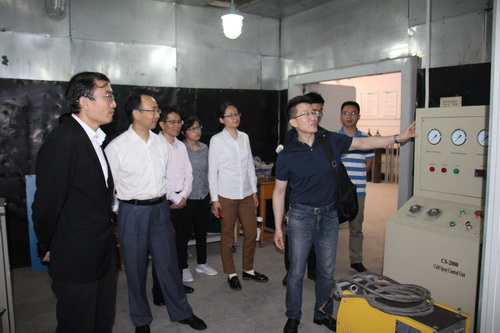 座谈会前,解令海一行还参观了机材学院实验室。