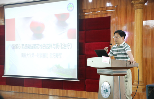 欧阳爱军主任以《耐药G-菌感染抗菌药物的选择与优化治疗》主题,结合抗菌药物药代动力学/药效学理论,深入浅出地讲解了在临床上常用抗菌药物的选择与优化治疗、各类抗菌药物的适应症及特点,并与临床医学院/附属医院医务人员现场互动交流,耐心解答与会人员的提问。