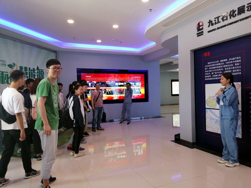 实习期间,学生参观了石化大厦一楼展示厅,对九江石化有了初步了解。然后由九江石化安全部的余丽丽老师给大家进行了入厂安全知识教育,提高了大家的安全意识。