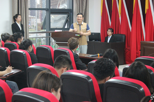 活动第一阶段,由曹钟安院长为本次活动作开场致辞。曹钟安院长首先为同学们详细介绍到场的两位校外嘉宾,同时表示对他们的到来予以热烈的欢迎;随后,院长表示“清源论法”活动是法学社的传统活动、是政法学院典型的具有代表性的学术活动、也是学院一直以来得以重视的活动,也是政法学子学习法律知识的很好途径。最后,他希望在活动中同学们可以积极参与、积极发言,也希望能借助这次活动激发政法学子的学法热情。活动第二阶段,正式进入活动流程。这个阶段是案例讲解、律师点评与学生提问穿插进行。