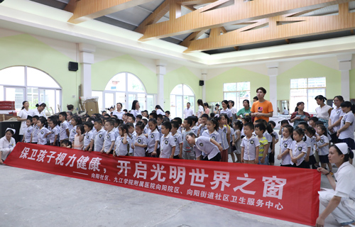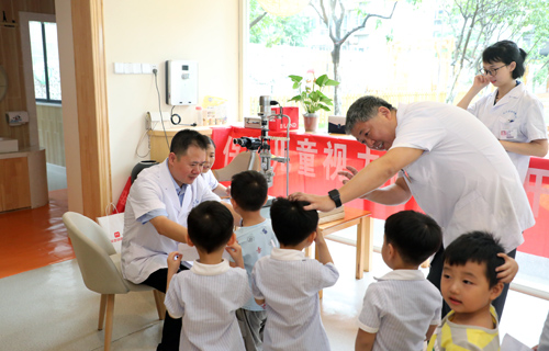 “小朋友们,拿好你们手中的视力检测单,三人成组进行测试。”“来,遮住左边眼睛,这个是什么图形?换一边,这个图形看得清吗?”视力测试过程中,临床医学院/附属医院的眼科专家细心、耐心地为孩子们做好每一项检查。