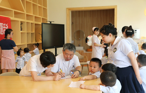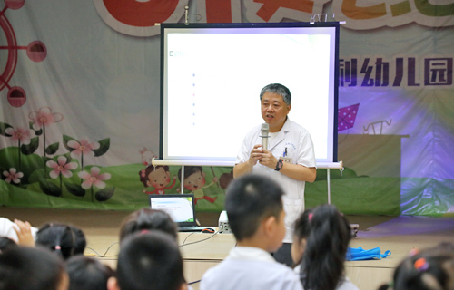 在完成所有小朋友的视力检查后,眼科专家黄健教授围绕近视、弱视、斜视等问题,向英才幼儿园的师生分别讲述了这些问题的分类、临床表现、治疗方法等。此外,他还把急性细菌性结膜炎、睑腺炎、上睑下垂、新生儿泪囊炎等眼科常见疾病的产生原因、治疗方法及禁忌事项进行了介绍。