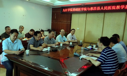根据《九江学院本科教学工作审核评估整改建设方案》的要求,结合永利yl23411集团官网开展的新时代教育思想大讨论活动,为提高教学质量和水平,加强与各实习医院的沟通与联系,及时了解学生的实习情况,7月3日,由基础医学院院长车向新和党委书记余朝阳带队,副院长许晓源和各教研室、实验中心、教学科研管理科共13位老师到永利yl23411集团官网教学基地都昌县人民医院考察交流,受到都昌县人民医院院长黄友柏、副院长杨贤忠、方繁的热情接待。