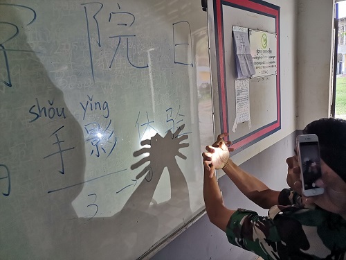 10月4日下午,为庆祝第六届“孔子学院日”,柬埔寨皇家科学院孔子学院柬埔寨王家军特种伞兵部队911旅汉语中心举办了“舞棋弄影”主题活动,旨在让学生通过体验五子棋与手影戏感受中华文化的魅力。本次活动由汉语教师志愿者崔晨晨策划组织,二十余名学生参与。