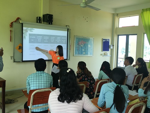 随后,志愿者教师穆晓彤对新学期课程设置进行了详细介绍。穆老师针对本科班和短期班两个不同班型分别做了说明,尤其强调了课时安排和上课时间上的变动。新的教学方案将以汉语综合课为主,同时设置汉语技能专项训练课程,包括听、说、读、写四个部分,旨在以交际为中心,培养综合型汉语人才。最后,穆晓彤老师还对新学年中文系的课堂规范提出了新要求,制定了清晰明确的课堂管理制度。严格的课堂管理制度将帮助学生把更多的精力在汉语学习集中上,力求让学生的汉语水平得到快速提高。