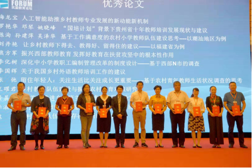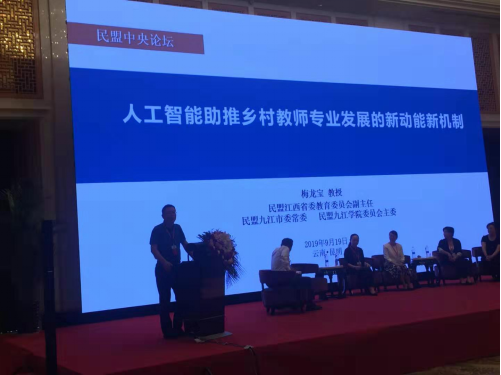 教育领域专家学者、民盟各级组织领导和代表,围绕以中西部教育振兴、贫困地区教育公共服务能力建设、乡村教师队伍建设为主题,开展研讨和交流。论坛上,梅龙宝教授作了《人工智能助推乡村教师专业发展的新动能新机制》主题报告发言,就如何利用人工智能,建立“AI+”智能教学系统、“AI+”智能测评系统、“AI+”智能管理系统,促进乡村教师专业发展,革新教育教学模式,推动教育均衡公平发展,并提出了到2020年由“农村教育烛光行动”托底扶贫活动转段升级为“农村教育人工智能行动”引领振兴活动的建议。