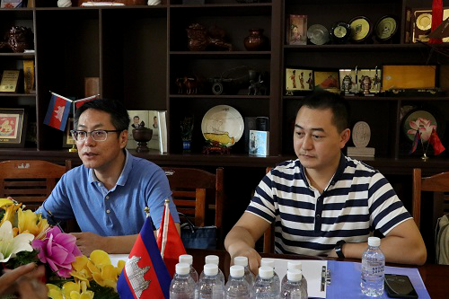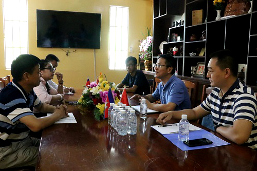2019年9月5日,中华人民共和国科技部科技援外项目组柬埔寨太阳能发电技术的研究与示范项目的验收工作组成员东华理工大学教务处处长周书民和人工智能学院副院长汪志成,访问了柬埔寨皇家科学院孔子学院。柬埔寨皇家科学院孔子学院中方院长柴克清、柬方院长苏碧娜(Vuth Sopheakna)在孔子学院一楼会议室热情接待来宾,双方展开友好会谈。