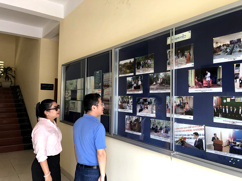 会后,柬方院长苏碧娜(Vuth Sopheakna)带领东华理工大学教务处处长周书民和人工智能学院副院长汪志成参观并详细介绍柬埔寨皇家科学院。