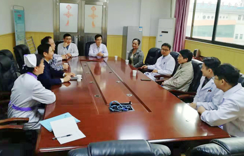 随后,李广欣前往医院微创外科,看望联系青年教师李晓华博士。李晓华老师是九江本地人,曾在附属医院工作过,2019年作为高层次人才引进,现为微创外科主任。他向李书记详细汇报了回院后的工作、生活情况,他说,医院党委、行政对他工作的开展提供了极大的支持,在生活上也给予了很大的帮助。微创外科开科一个月以来,成效斐然。