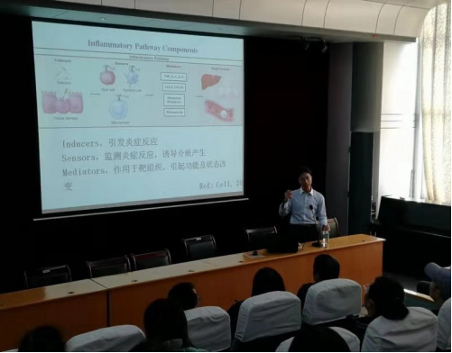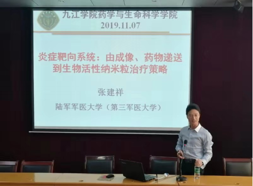 11月7日下午,陆军军医大学博士生导师、教育部青年长江学者张建祥教授在浔东校区立本楼三楼学术报告厅为药生学院师生作了一场题为《炎症靶向系统:由成像、药物递送到无药治疗策略》的学术报告,报告会由张小谷院长主持。