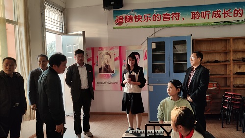 在瑞昌市教育局人事科何仁军科长陪同下,陈春生一行先后走访了瑞昌市南义镇中心小学、横港镇中心小学、范镇中心小学、花园乡中心小学、高丰镇中心小学,以及肇陈中学和瑞昌市三小。分别看望和慰问了正在这里进行顶岗支教实习的15名音体美专业学生和参加教育顶岗实习的同学们。陈春生副校长一行实地考察了受援乡村小学和实习学校的校园建设和校园环境状况,并深入到宿舍、食堂、运动场、留守儿童之家、画室、排练室等处参观、了解实习支教学生们的生活、工作和学习情况。