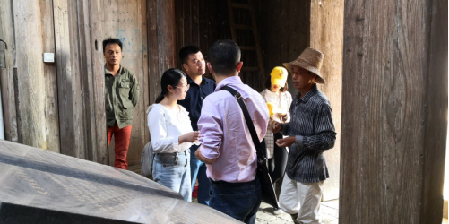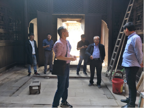 温圳镇的杨溪李家村历史人文底蕴厚重,建村以来,诞生进士、举人数以百计,它也是我国近代著名教育家、美术家、书法家李瑞清故里,除此之外,村落民间文学、民俗活动丰富,如杨角头、白虎堂的传说以及龙凤呈祥灯彩表演活动等。在杨溪李家村,调研团队与同济大学测绘学院相关科研人员就传统村落数字化保护、历史建筑三维扫描建模等问题进行了讨论。