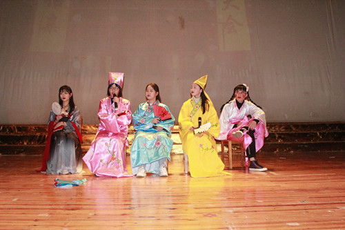 真正把晚会推向高潮的便是由礼模队带来的舞蹈《金陵十三钗》,在这建国七十年之际,基础医学院礼模队用一舞《金陵十三钗》为祖国献礼、为爱国歌颂,优美的舞姿,认真的神态,把观众带入了那个战火纷飞的年代,警笛长鸣,血泪横飞,再一次深入那段凄惨悲愤的历史,希望的只是,如今的我们,勿忘国耻,珍惜生活,为祖国繁荣事业贡献自己的一份力。