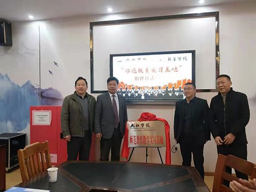 在热烈的掌声中,陈春生副校长与新星学校项珍跃校长共同为“九江学院师范教育教学实习基地”揭牌。