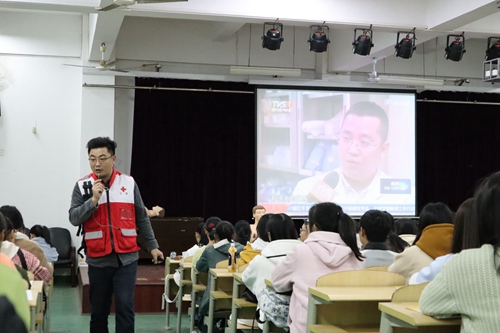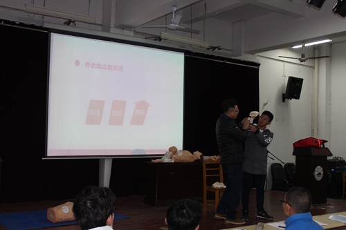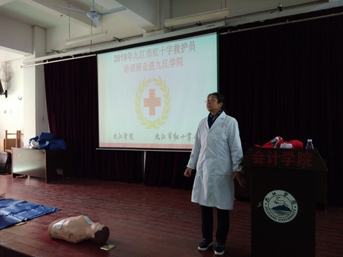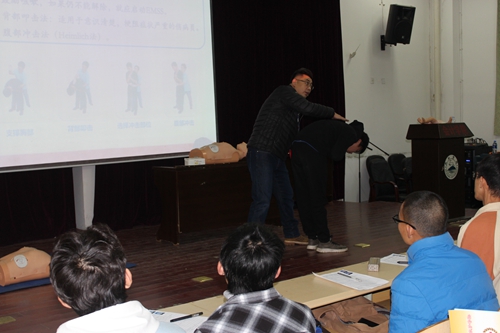 为了更广泛地在校园内开展和普及应急救护知识与技能培训工作,切实提高永利yl23411集团官网师生的安全防范意识、防灾避险和自救互救能力,11月20日起,在校学生处、团委的支持与配合下为学生举办了应急救护培训,邀请九江市红十字会应急救护知识培训专家钱逢鑫老师为学生进行了医疗卫生应急救护培训,参加培训的学生代表达230余人。