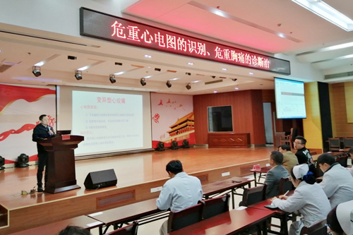 课上,黄问银主任结合自己丰富的临床诊断经验就高危异常心电图、高危急性胸痛、ACS早期症状识别等内容进行了细致的讲解,强调必须要提高急性心血管疾病的诊断能力及急救能力,更好地为患者提供高效的诊疗服务。聂红兵主任细致讲解了卒中中心建设的意义和实现路径等问题,让大家更加了解了卒中中心建设的重要性,同时聂主任作为江西省卒中中心评委会专家之一,也提出了自己的一些想法和建议,供大家学习和借鉴。何佰顺副科长就胸痛中心及区域协同救治体系的基本概念和意义进行了讲解。