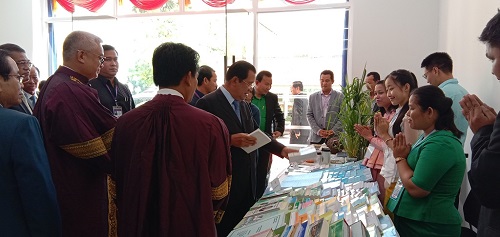 仪式结束后,柬埔寨皇家科学院院长宋独院士(SOK Touch)带领出席仪式的嘉宾参观科学院举办的文化展览,该展览举办于恩达黛薇大楼一楼大厅内。柬埔寨皇家科学院孔子学院参加了展出,其展区以中国戏曲为主题,融合了众多中国元素,如京剧人偶、红色油纸伞、中国围棋、古风书签、中国结、熊猫玩偶及相应的中文书籍等,从多个方面展现了丰富多彩的中国文化,体现了皇家科学院孔子学院在中柬两国文化交流上的桥梁作用,并充分展现了中柬两国间深厚的友谊。