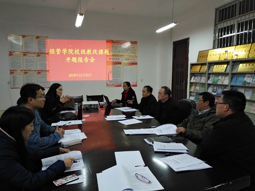 为了积极有效推进教学改革项目,提升教学质量,12月23日下午,经济与管理学院在义丰楼619会议室召开了2019年校级立项教改课题开题汇报会议。评审专家组及课题组成员参加,经管学院院长项益才作为评审专家参加了此次会议并担任专家组组长。