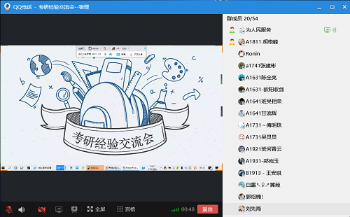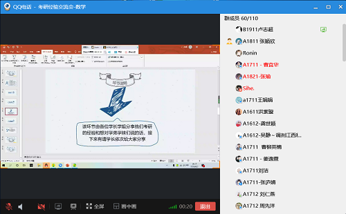 为进一步增加学生考研热情以及了解更多考研知识,2020年6月3日晚7点,理学院开展了线上考研经验交流会。本次交流会诚邀了16级考研成功的学长和学姐出席并分享经验。