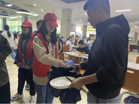 后勤管理处开展了“光盘礼相送”活动,鼓励学生光盘行动。团委配合后勤处安排青年志愿者在各食堂餐盘收取处值班,通过用餐提醒、现场检查等形式对餐饮浪费行为进行制止和教育引导。志愿者们还张贴宣传海报,在团属新媒体平台推送了宣传视频、学习心得,教育引导学生在餐厅按需点菜、在食堂按需打饭、在家按需做饭,让节约从自身做起,从点滴做起。