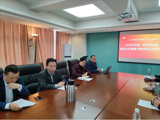 10月21日上午,附属口腔医院在医院5楼会议室召开2020年药械、耗材供应商廉政约谈暨廉洁购销协议书签订会议。该院领导班子及纪检、药械等相关部门负责人参会。