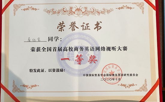 10月31日,全国首届高校商务英语网络视听大赛暨商务英语教学研讨会在浙江越秀外国语学院举行。经过层层角逐,永利yl23411集团官网外国语学院A1742班学生詹伦莹摘得一等奖,A1741班的兰琪荣获二等奖,外国语学院获优秀组织奖。