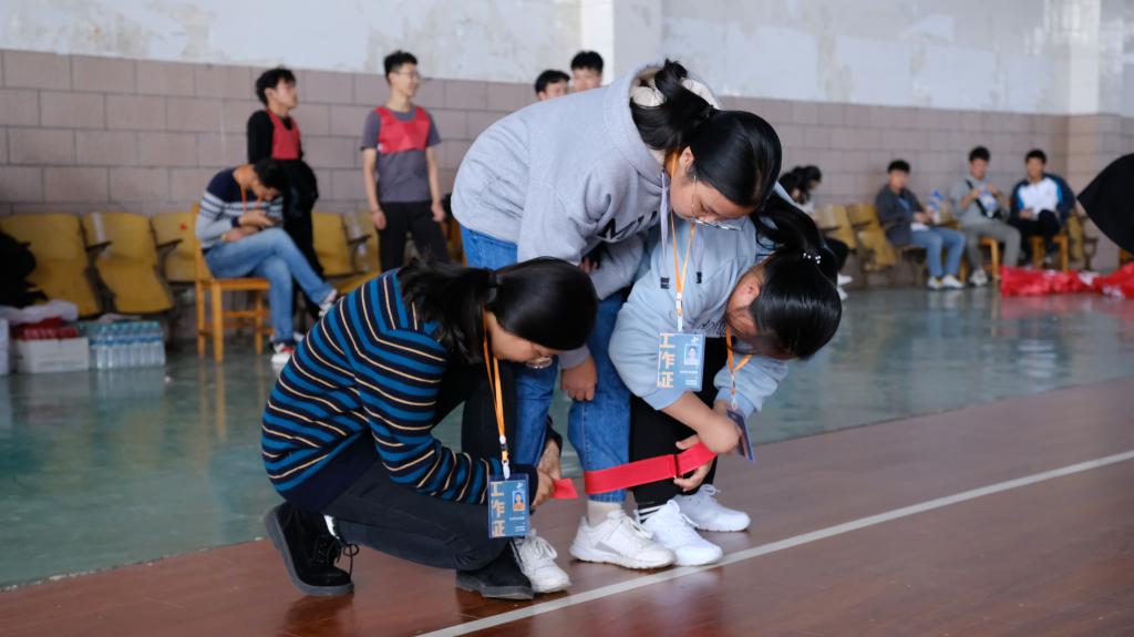 在趣味运动会上三人两足比赛你争我赶、高潮迭起,夹弹珠和撕名牌大战场面热烈,欢声不断,同学们在竞争和追逐中收获快乐、增进友谊;个人才艺展示则展现了同学们充满活力、朝气蓬勃的一面。