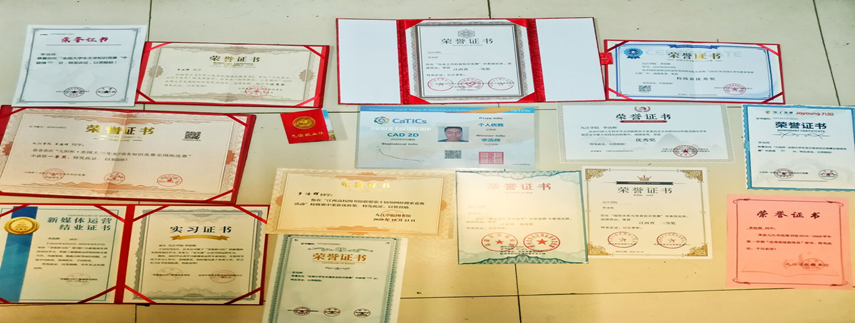 他积极参加各种学习竞赛,比如第二十二届CaTICs竞赛、2020年度全国大学生语言文字能力竞赛、江西高校图书馆联盟第十届知网杯搜索竞赛校级赛、九江市作文比赛、普译杯大学生英语竞赛、创新英语挑战活动综合能力赛、华梦杯国际交流英语知识竞赛、大学生财经素养大赛等等。