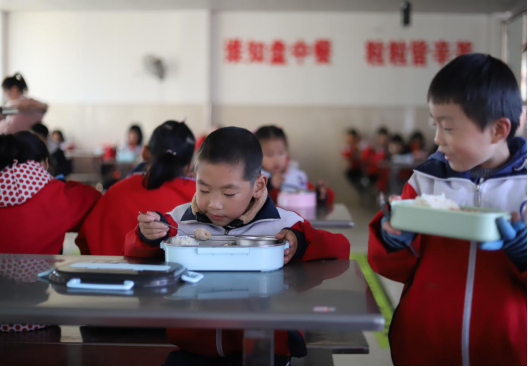 据了解,食堂的资金来源于每个月学生及老师所交的100元伙食费,全校五百多人也就是五万多元的伙食资金,平摊下来每个人每餐能用的不足3元,但食堂阿姨却能用一双巧手给孩子们带来这样美味可口的饭菜,大家都吃得很开心。进入食堂之后,有学生拿着饭盒,带着汤盆,还有孩子带着从家里果树上摘来的橙子……“轮到我了”“阿姨我今天要两块饭,我能吃完”……阳光灿烂下,这是食堂里热闹的场景。