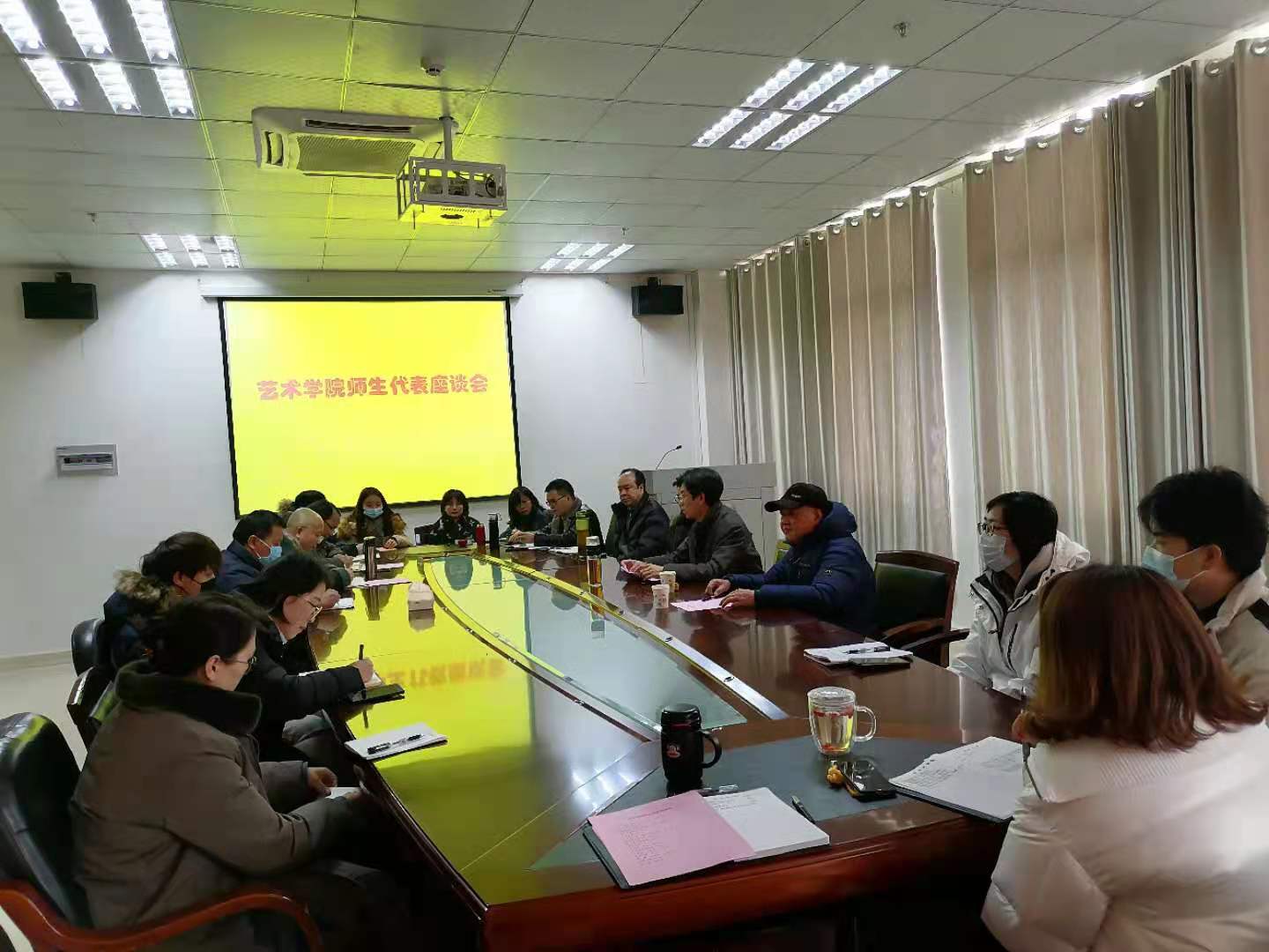 1月7日下午,校党委委员、副校长查振华在艺术学院召开师生代表座谈会。艺术学院党政班子成员、博士代表、高层次硕士代表、教研室、科室负责人代表及学生代表参加了座谈会。