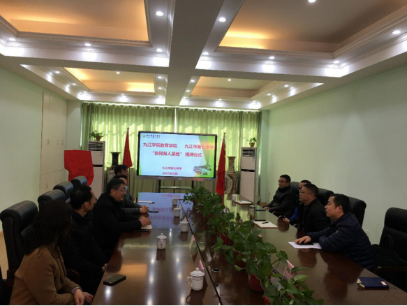 在与会人员的共同见证下,教育学院院长王殿元与九江市七中校长李青代表两校共同为“协同育人基地”进行揭牌。
